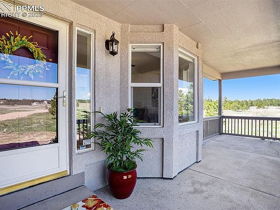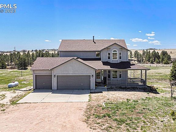 5 Miles North on Meridian from Woodmen & Meridian - Nine Glorious, Treed Acres w/Seasonal Black Squirrel Creek Crossing this Property - Serenely Private w/Breathtaking Pikes Peak Views in Desirable Latigo Country Estates - Zoned A-5 & Horses Allowed & Mostly Fenced - Loafing Shed + RV Garage/Shop (or 2 Car Tandem - 30x16 - w/Electricity) Plus Three Car House Garage - Seasonal Pond - Herons, Ducks, Mule Deer, Elk, Turkeys & Foxes Are Just Some of the Wildlife - Approx 350 Trees/Shrubs Were Planted - Covered & Partial Wrap Around Front Porch Welcomes Friends & Family - Tons of Natural Light Throughout the Home - Formal Dining/Living Rm w/Bay Window Open to Family Rm & Kitchen - Open, Eat-In Kitchen w/Hardwood Flooring, Newer SS Appliances, Pantry, Generous Cabinet Space, Walk Out to Deck w/Lovely Views - Adjacent Family Rm has Rock-Surround Gas Frpl & Wall of Windows to Enjoy the Expansive Views to Trees, Creek Area & Rolling Hills - Private Powder Rm & Separate Laundry Rm w/Deep Sink & Washer/Dryer - 4 Spacious Bdrms on Upper Level - Master Suite w/Incredible Pikes Peak Views, Bay Window Sitting Area, Walk in Closet, Brand New Custom Glass Shower Enclosure & Designer Tile, Private Commode Rm, Soaking Tub & Double Vanity - Convenient Full Bath in Hall - Spacious Walkout Basement w/Two Slider Doors, Garden Level Windows & Sauna-Generous Half Bath w/New Flooring/New Toilet/New Vanity/New Sink Top/New Mirror/New Lighting - New Carpet Throughout 5/23/New Interior Paint 5/23/New Roof 9/22/Upgraded 2 x 6 Construction/Stucco Exterior/Central Air for Added Comfort/Whole House Water Filter/Security System/Honeycomb Blinds/New Lighting/New Clear Deck Sealer 5/23 - Tree Species Include Ash/Oak/ Aspen/Fir/Chokecherry/Juniper - Custom Home by Hayden Construction - Natural Gas Stub Available, No HOA Dues & HOA is Inactive as per Seller - 7 Minutes to Falcon & All Amenities - Get Ready to Say WOW! Use of Latigo Equestrian Center w/45 Acre Facility & Community Walking/Riding Trails