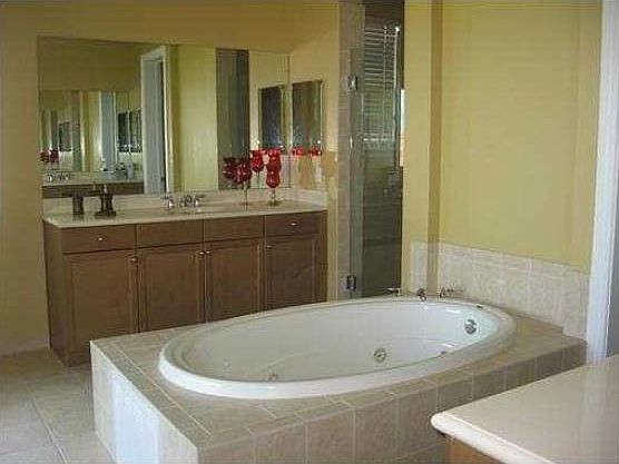 APPROVED SHORT SALE! TWO STORY 5 BEDROOMS 4 BATHROOMS, 1 FULL BEDROOM AND BATHROOM DOWNSTAIRS, LARGE MASTER SUITE WITH UPGRADED BATHROOM, PARTIAL VIEW OF THE LAKE FROM MASTER BEDROOM, GOURMET KITCHEN WITH 42" WOOD CABINETS, GRANITE COUNTER TOPS, STAINLESS STEEL APPLIANCES. CHANDELIER AT ENTRANCE DOES NOT STAY GREAT CURB APPEAL. SHOWS First Floor Entry, Cooking Island, French Doors, Pantry, Chandelier To Be Replaced, Roman Tub, Split Bedroom Automatic Garage Door Opener, Dishwasher, Disposal, Dryer, Electric Water Heater, Washer/Dryer Hookup, Microwave, Electric Range, Refrigerator, Smoke Detector Entry Level, At Least 1 Bedroom Ground Level, Master Bedroom Upstairs, Sitting Area -Formal Dining,Breakfast Area,Snack Bar/Counterual Sinks,Separate Tub & Shower Dining Desc: Formal Dining,Breakfast Area,Snack Bar/Counter Floor Desc: Carpet Floors, Ceramic Floor, Wood Floors