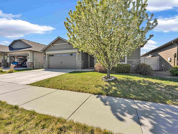 This is the ONE!! This rare gem is just minutes from the Meridian Village. This craftsman style home is SINGLE LEVEL, has a 2 car garage and wide entry and hallways. It has large vaulted ceilings that gives it a luxury feel. The functional Kitchen is nice size and has wood floors, quartz countertops, designer backsplash, gas range and a good size pantry. The split level floor plan has the main bedroom with two walk-in closets, vaulted ceilings, dual vanities and walk in shower. So much space. All blinds included and No REAR neighbors!!! The back yard is low maintenance and newer vinyl fence and patio. Come make this your new home. ALL NEW CARPET and PAINT!!