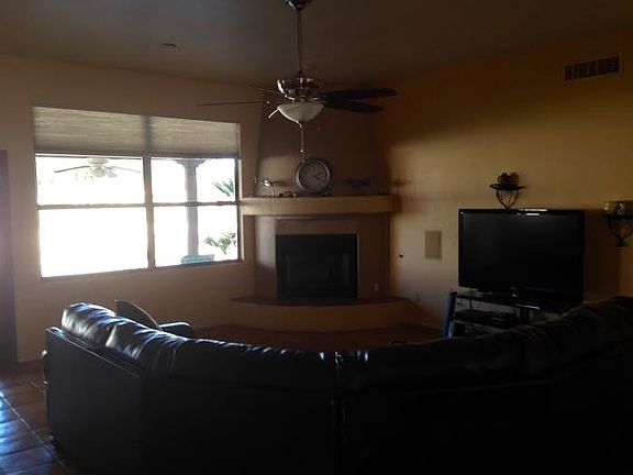 Beautiful 3 bedroom/2 bath home with an amazing view of the golf course in Mesa Del Sol. The home includes granite counter tops, saltillo tile flooring, gas fireplace, refrigerator, stove, and Washer/Dryer. There is a large 2 car garage with plenty of storage as well as an front court yard and a large backyard with a pool and jacuzzi. Lawn service and pool service is included in the rent. Pets accepted upon approval.