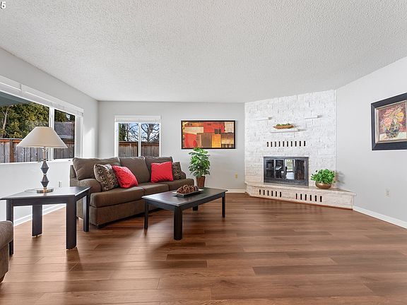 Welcome to Your Dream Home in the Heart of King City! Nestled in the sought-after 55+ King City Civic Association community, this charming 1,034 sq. ft., one-level gem at 12398 SW King George Dr. is the perfect blend of comfort and sophistication. Offering two spacious bedrooms and one beautifully updated bath with a roll in shower, this delightful home is move-in ready and waiting for you! Discover a newer kitchen with updated cabinets, quartz countertops and stainless steel appliances, including a gas range designed to inspire your inner chef. The open and airy living room invites you to relax by the stunning floor-to-ceiling raised-hearth circulating fireplace - a cozy centerpiece that sets the stage for memorable gatherings. Large, double glass-insulated windows fill the space with natural light while offering a charming peek-a-boo view of the nearby golf course, shimmering lake, and tranquil fountain. Imagine sipping your morning coffee on the covered patio as you soak in the serene surroundings of this quiet cul-de-sac location. Enjoy the convenience and ease on your pocket book solar panels for all your electrical needs. Also includes an updated electrical panel. But the perks don't stop at your doorstep! Easy care Luxury Vinyl Planking throughout for ease of mobility. King City offers a country club-inspired lifestyle with countless amenities. Whether you're teeing off on the golf course, exploring nearby walking paths, or joining in on the vibrant community activities, this is the lifestyle you’ve always imagined but never dreamed possible. Don’t miss this rare opportunity to experience carefree, single-level living in one of Oregon's premier 55+ communities. Call today to schedule your tour and start living the good life at King City!