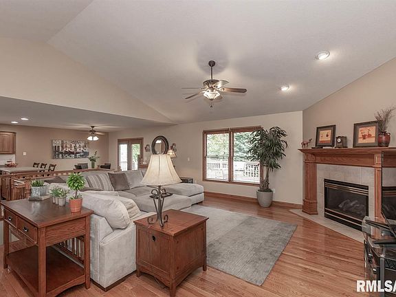 Fall in love with this gorgeous home located in Blue Grass, IA just minutes from the Quad Cities! Over 3400 sq feet of finished living space in this open concept ranch style home. Main floor has been freshly painted with new carpet in the 3 roomy bedrooms. Cathedral ceilings welcome you as you step into inside. New flooring in kitchen, laundry & main floor bathrooms. Basement offers another realm of living, with large kitchenette area perfect for entertaining. Watch your favorite movies or sporting events on the big screen. Room is setup with stadium seating, movie screen, surround sound & projector, all remaining for new owner, as well as the pool table in the game room! 8X15.5 foot storage room off game room in additional to many large closets for plentiful storage! Dedicated craft room with utility sink & built in white cabinets. Basement could function as a separate living space for extended family with large bathroom. Recreational lake for fishing and canoes.