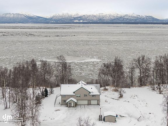 Privacy of Nearly 10 Acres w/ Unobstructed Inlet Views. Fish @ Fishcreek! Watch Seals, Belugas, & Eagles from Back Deck! Great Rm w/wall of Windows and Vaulted Ceiling, Cozy Gas Lit Wood Burning Fireplace. Large Master w/Views, Private Ensuite & WIC. Kitchen Boasts Vintage ''Cook's' Delight'' Stove , SS Appliances, Solid Counters. 3 car Garage + Detached 2 car Garage. New carpet coming soon!