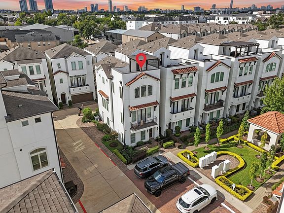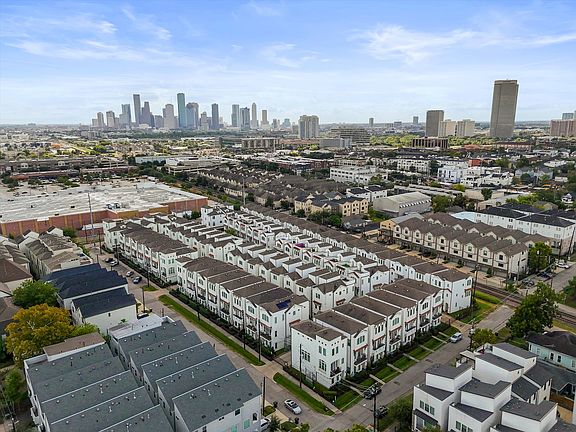Experience the best of inner-loop living in this stunning former model home. As an end unit in the gated Vista De Sevilla community, it's filled with expansive windows, natural light and convenient access to guest parking and entering and exiting the gated neighborhood. The open floor plan includes a gourmet kitchen with quartz counters and a private balcony overlooking a park. A highlight is the rooftop terrace with a pergola and spectacular downtown skyline views. The spacious master suite boasts a custom walk-in closet. Located in Rice Military, you're a short walk to Houston's finest eateries and close to Downtown and Memorial Park. A true gem!