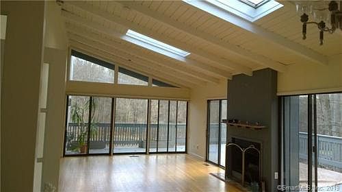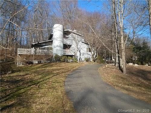 It appears that the architect knew the past land use of the area as apple orchards by incorporating the design of a silo in the facade and uses it internally as a staircase to the master suite. Contemporary home on lovely usable acre at end of North Stamford cul-de-sac.Attractively set behind semi-circular driveway. Vaulted ceilings, skylights, glass galore MBR suite French doors to office/nursery. Large walk-in closet plus vaulted ceiling, jacuzzi, oversized glassed shower, heated towel rack and radiant heated floor, Kitchen with atrium, radiant heated floor, granite island and views of terraced gardens & stone patio. Open living room and dining area with multiple sliders. 2 add'l bedrooms on first floor with renovated bathroom. LL family room w slider to side yard. Add'l bedroom, full bath, laundry. with entrance to garage. Entertain on wrap around deck or stone walled patio. Multi-zone heat/c/a. Radiant floor heat in two add'l bathrooms. Note photos taken before tenants moved in. NOTE: House is being power washed and painted.