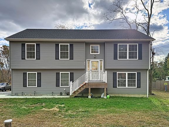 Welcome to this modern 3-bedroom, 2.5-bath raised ranch, perfectly located just 5 miles from the Naval Submarine Base. Built in 2023, this nearly new home offers a perfect blend of style, comfort, and convenience. Step inside to a bright, open-concept living area featuring large windows, luxury flooring, new electric fireplace and a stunning kitchen with stainless steel appliances, quartz countertops, and a center island-ideal for entertaining. The spacious primary suite includes a private en-suite bath with contemporary finishes. Two additional bedrooms and another full bath provide plenty of space for family, guests, or a home office. Enjoy year-round comfort with central air conditioning, and appreciate the convenience of a two-car garage and low-maintenance exterior. The raised ranch design offers a versatile lower level, perfect for a family room, gym, or hobby space. Located in a desirable area just minutes from the Sub Base, shopping, restaurants, and major highways, this home combines modern living with unbeatable accessibility. Don't miss this opportunity to own a move-in ready home with all the modern upgrades - schedule your private showing today!