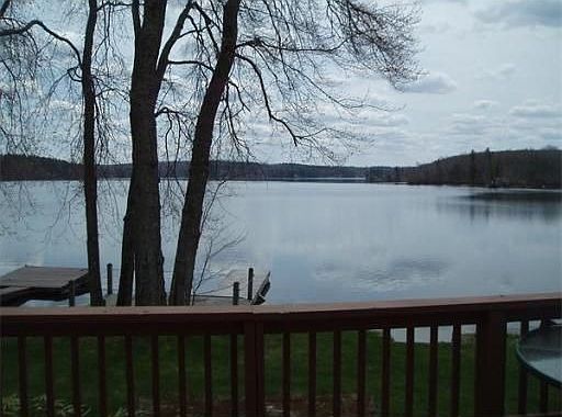 Breathe taking waterfront with approx 40 feet of frontage on Lake Manchaug, 380 acres and full recreational! Cozy year round nicely maintained property has an awseome view of the Lake from an oversized deck or while you dine inside home. New septic system installed in Fall of 2011. There is a 22x24 modular two car garage with the potential for an extra bonus room over it!! Large storage shed, basement for extra storage...nicely maintained yard. Come make your family waterfront memories!!!