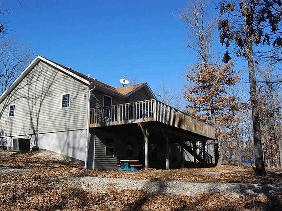 57 timbered acres, joins corps property, 1/2 mile to water's edge @ gravel access. Approx. 1 mile to a better ramp. No restrictions. RV hookups & a storage building. Plus a 1 BD apartment w/kitchen, living & 3/4 BA in the 30x60 detached building w/2 large overhead doors & 1 door opener. This is a wildlife paradise! Priced to sell!