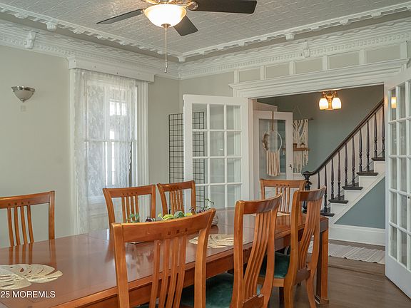 Nestled in the heart of Keyport this charming historic gem is a dream come true for lovers of classic architecture.Step inside to discover original hardwood floors and elaborate crown moldings that grace the house.Living Room is highlighted by a stunning decorative mantle, French doors, and a beautifully restored tin ceiling, exuding timeless elegance. Dining Room is bathed in natural light, offering serene views of the garden outside.Upstairs, you'll find three generously sized bedrooms and a full bath. The original staircase has been carefully reproduced, leading you up to the 3rd Floor Master Suite.This private retreat offers breathtaking views of Raritan Bay from both the master bedroom and its luxurious bath. Basement features a family room & more.