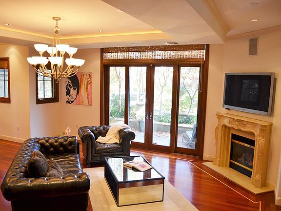 Located in the heart of prestigious downtown Los Altos, this gated and secured Luxury Townhome provides the utmost in location and sophistication. A lovely courtyard welcomes you to this exquisite first floor unit. Gourmet kitchen with granite countertops, high end stainless steel appliances, center island and breakfast bar. Elegant living room that leads to a private patio has high ceilings and fireplace. Brazilian cherry wood floors throughout the lower level compliment the high-end finishes. Master suite features Brazilian cherry wood floors, gas fireplace, two large walk-in closets and a spa-like bathroom. Surround sound and speakers throughout. Inside laundry and secured parking for 2 cars. Top Los Altos Schools!