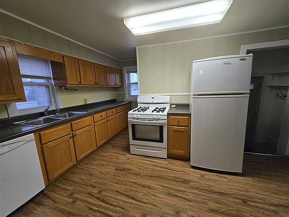 2 bedroom, 1.5 bath home Upper level has 1 bedroom and a bathroom Main level has the living room and kitchen Basement has 1 bedroom, laundry room, toilet and sink Large kitchen with extra cabinets for storage Fenced yard with a shed Gas stove Dishwasher GFA heat Tenants are responsible for all utilities: Xcel Energy for Gas, EGF water & lights Tenants responsible for shoveling their steps and sidewalks, lawncare On street parking Laundry hookups in the basement