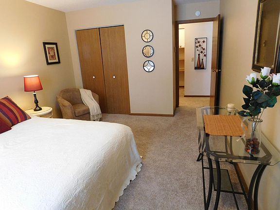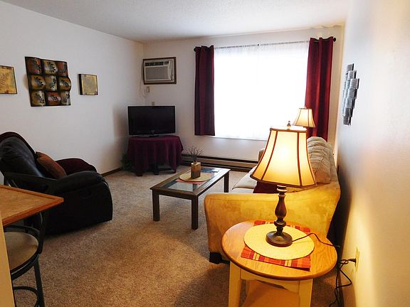 UNFURNISHED option as well! Very nice and spacious, FULLY TURN-KEY furnished unit in 4 plex, ranch style with no steps! Includes appliances and free common laundry!! WONDERFUL, QUIET, small town neighborhood, on great, private, corner lot, with pretty landscaping and mature trees. Unit available immediately with everything you need! Just $695/month! Nice appliances, and lots of storage in cabinets and closets/pantries. NEWER, high-efficiency windows and newer roof (not shown in pictures). A/C in all units. Common laundry with new washer/dryer paid by owner-NOT coin! Interior hall helps keep utilities lower, as Landlord pays for all common areas, and you have an outside entrance on both ends of building, then inside entrance to apartment....less heat loss. Everything here is VERY WELL MAINTAINED and very clean! Owner pays water/sewer/garbage/lawn/snow, and laundry, plus common hall/laundry cleaning/maintenance! EXCELLENT assistant/manager. Must have good credit and references no pets. Prefer 1 year lease . Tenants pay electric (very efficient) and cable. Landlord pays: water, sewer, garbage/recycling, common hall/laundry/grounds maintenance, snow removal/lawn care. Laundry is included with rent at landlord cost (no coin).