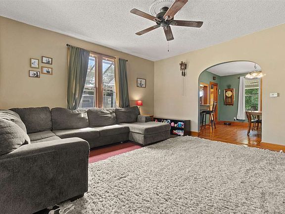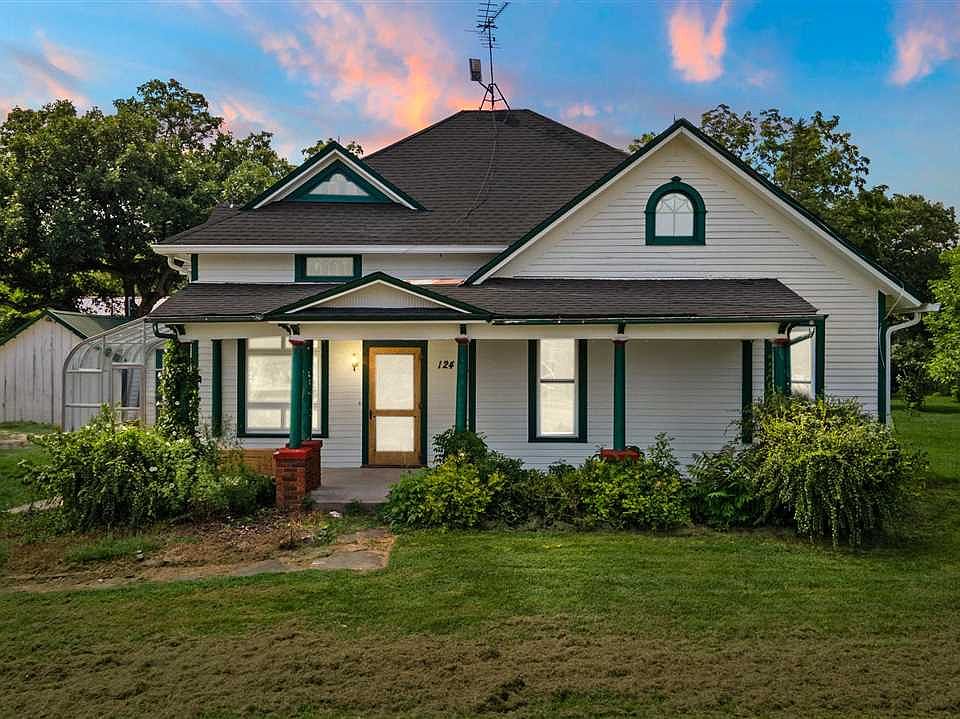 Beautiful historic home nestled on a great 1.14 acre corner lot! Originally built in 1861, but county assessor site states it was built in 1914- this home is loaded with charm and recent updates! Nice functional floor plan & high ceilings throughout the main level. Cozy great room that features tons of natural light. Kitchen features character style cabinets, subway tile backsplash, modern light fixtures, gas range, & new kitchen faucet. Fabulous formal dining room with granite top breakfast bar. Great attention to detail with the gleaming hardwood floors, antique hardware, transom windows, wide trim, solid doors, pocket doors, & arched doorways. The main level features two bedrooms & an updated bathroom. The upper level features a 3rd bedroom or office. Many new updates in 2020 include: newer windows, new light fixtures, new front and back exterior doors, & new roof. Other updates between 2023-2024: new HVAC in 2024, professionally painted exterior in summer 2024, carpeted bedrooms 2023, professionally trimmed & removed any dead trees, & added wire farm fence to fence-in the backyard. Attached greenhouse, 1-car detached garage, & private backyard with many perennials and mature trees. Enjoy sitting on the composite back porch complete with farmhouse light fixtures & Amish rocking chairs that will stay! Chicken coop & usable barn for storage of your lawn tools.