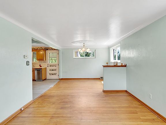 Welcome Home to this Charming 3 Bedroom, 1.5 Bath, Level Entry Brick Ranch. You will love the Open Concept Floor Plan, Neutral Décor, Beautiful Hardwood Floors Throughout and Cove Ceilings in the Living Room & Dining Room. The Eat-In-Kitchen has Oak Cabinets, New Dishwasher, Double Bowl Sink, LVT Flooring and Door that leads to a Delightful Covered Back Porch with Built-in Planters and Access to a Level Park-like Yard with Fruit Trees and Large Shed. Daylight Finished Lower Level Game Room has a ½ Bath and Gas Fireplace. The Walkout Laundry/Utility Room is Spacious and includes Washer & Dryer. A separate 12x10 Storage Room/Workshop is adjacent to the Oversized 2-Car Integral Garage. The Large Driveway area provides Additional Off-Street parking for at Least 6 Cars. AHS Home Warranty is Included.