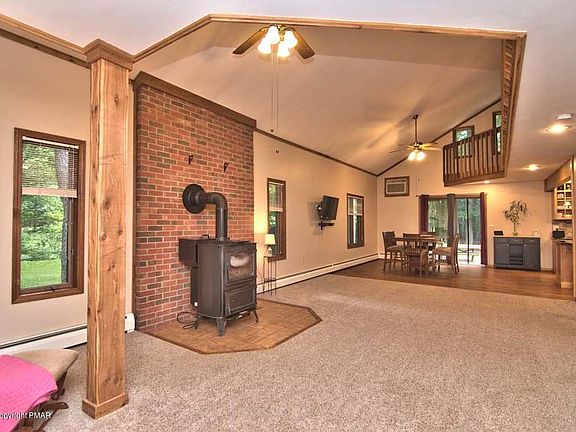 Pocono living at it's best. Quiet community with beautiful homes in a prime location to everything. This sprawling 4/5 bedroom, 3 bath home is beautifully landscaped and has also maintained the wooded serenity. Large deck facing the woods to enjoy the peace and wildlife. New kitchen with large island to eat in or separate dining area.Newly installed economical natural gas heat. Ceiling fans in all rooms. Heated 2 car garage with 10' ceilings. Panel ready for full house generator.All showing agents,potential buyers & service providers are required to adhere to the Governor's Guidance for Real Estate and the CDC guidelines also utilizing Masks, gloves, hand sanitizer & disinfectant wipes.