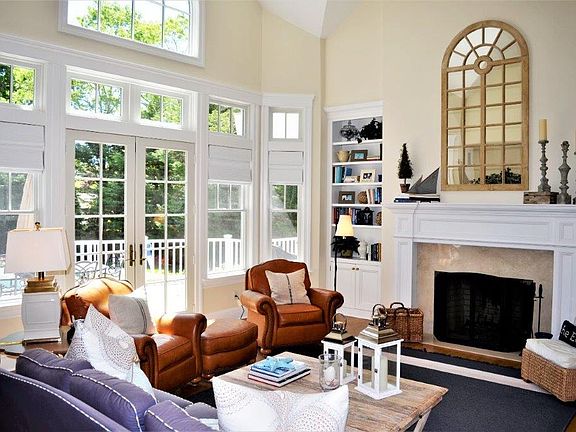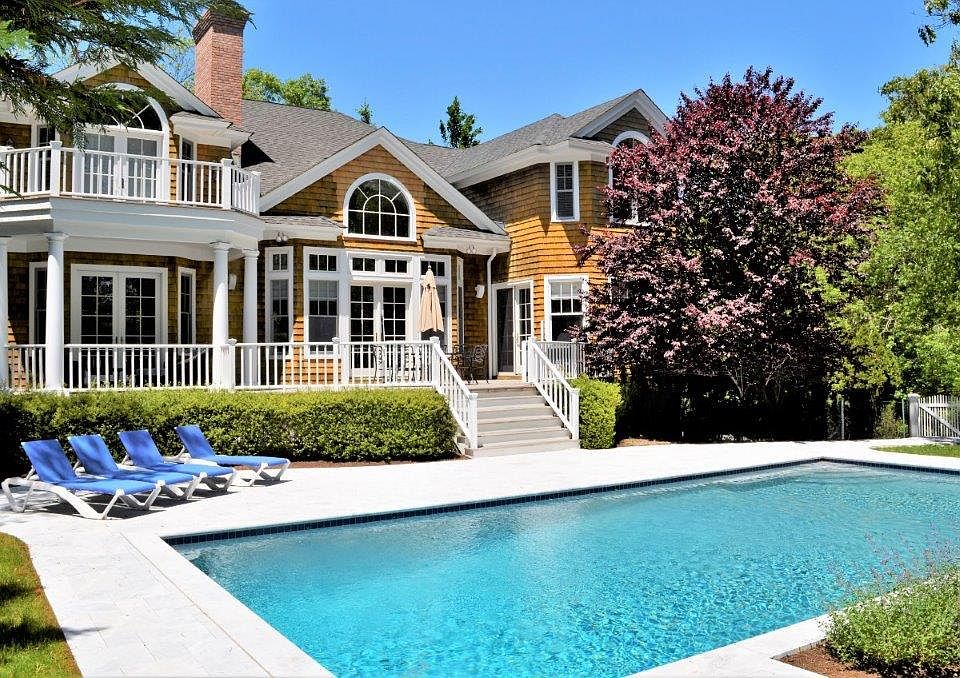 Immaculate shingled Post Modern offering spacious entry foyer, cathedral ceiling living area with fireplace and French doors to deck, dining room, eat-in-kitchen with granite counters, stainless steel appliances and center island. A den, laundry room, bedroom with fireplace and full bathroom complete the first floor. The second floor features large master suite with balcony, walk in closet, marble bathroom with double vanities, plus 2 additional bedrooms, each with private bathroom. The full basement is finished with game room, TV room, full bathroom and access to the 2-car garage. The beautifully landscaped property includes multiple deck areas and heated Gunite swimming pool. Village shops, restaurants and the ocean beach are all just minutes away!