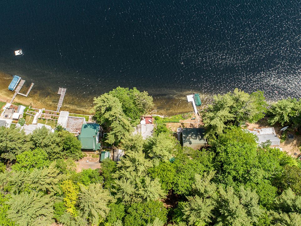 BIG OL' CAMP - this gem, right on the shore of sparkling MOUSAM LAKE, is the true definition - with tons of ''matchstick Pine'' walls, as well as open stud walls, this property can (and most likely has) accommodated a small army! Four bedrooms can easily sleep ten, plus a large screened porch overlooking the open deck and taking in the expanse of lake views. There is also a boat shed down near the camp, as well as the 2-car barn/garage at the top! Wonderful old fashioned CLAW-FOOT tub in the oversized bathroom, too!