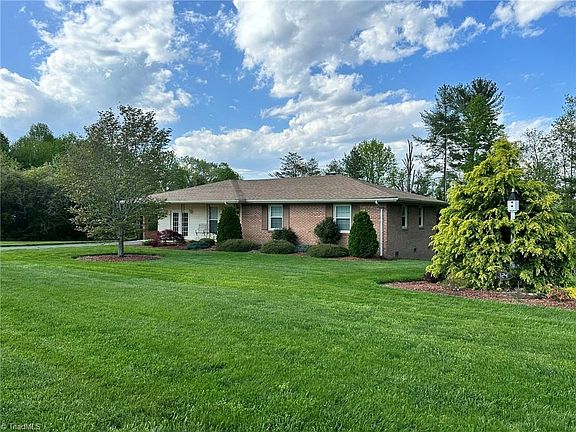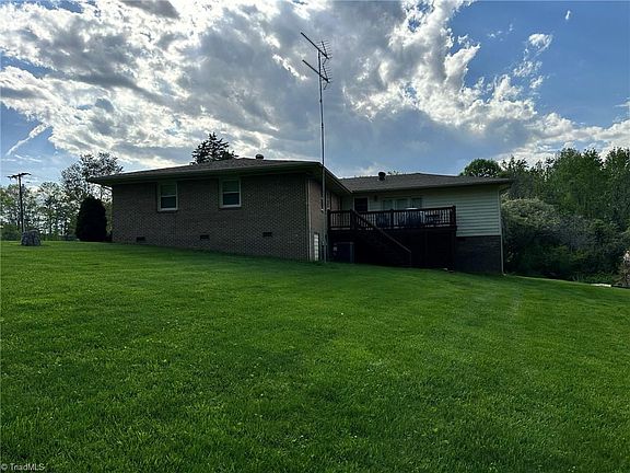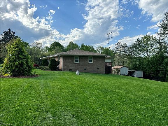 Well Maintained and updated brick ranch home with huge living room addition. Sitting on .88 acre, this property features a manicured yard, partial basement/workshop, 2 storage buildings, private deck and well/septic! This gorgeous home features quartz countertops, beautiful wormy maple cabinets in the kitchen, totally updated hall bath with tile shower, large primary bedroom that used to be 2 smaller bedrooms and a 756 sq. ft. living room addition with a walk-in closet for extra storage. Carport has been converted into a sunroom (not heated & not included in total sq. ft.) Roof & Heat Pump new in 2016. Convenient location- only seconds to Hwy 52 which is great for commuting or traveling and one mile from Cross Creek Country Club! Can be sold completely furnished making it a perfect purchase for an air bnb!