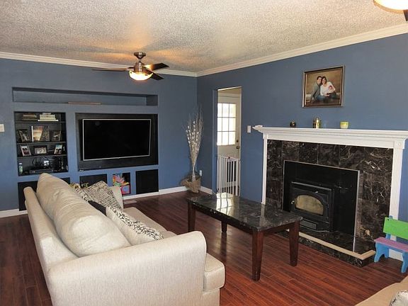 This home has been beautifully remodeled with an abundance of space!!! The remodel incorporates 4 bedrooms and an additional office, den, family or workout room. There is a spacious living room equipped with built in entertainment center, wired for surround-sound, and wood burning fireplace insert. The living room opens up to a spectacular kitchen with granite countertops, numerous cabinets, recessed lighting and tiled backsplash. Both bathrooms have been tastefully remodeled, one with a dual sink, tub and shower. Newer carpet in three of the bedrooms. There is a nice sized pantry that leads to the laundry room that also has additional cabinets and separate sink. A sprinkler system has been installed and equipped to water front portions of the property, and is ready with additional zones for the backyard. Additional storage space can be found in the three storage units located in the spacious backyard. This home is within close proximity to the grocery store, park, banks, elementary school, library, restaurants and so much more! What a great home!!!