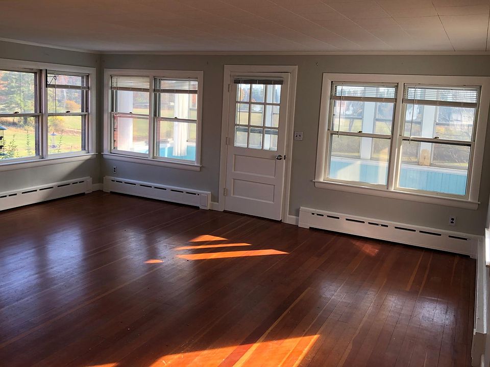 Freshly painted, sunny 3 bedroom/2 bath unit with stunning views of conservation land available starting Nov 1st (all landscape pictures included show views from the apartment). Located in scenic Rollinsford just a quick 5 minute drive from downtown Dover. 15-20 minutes from Portsmouth. 20 minutes from UNH. Just over an hour to Logan Airport. Local roads are perfect for quiet runs or walks and a local organic farm is a short bike ride away. The unit features a large living room, a three-season porch where you can watch the sunrise, hardwood floors, washer/dryer included, and lots of windows allowing plenty of natural light. Watch the birds from your window and keep your eyes open for deer or a family of turkeys walking through the fields. Includes a large one-car garage - no scraping off ice in the wintertime. The garage and private basement offer plenty of storage. Kitchen, living room, three-season porch, one bedroom, and one full bath are on the first floor; the remaining two bedrooms and one full bath are on the second floor. Small pets are negotiable for a $25/month fee per pet (sorry, no dogs). No smoking on the property. Annual lease. Landlord pays water/sewer, propane for the gas stove, landscaping, and plowing. Tenant is responsible for all other utilities; the electricity and oil heat costs may average $175-200/month depending on usage rates.