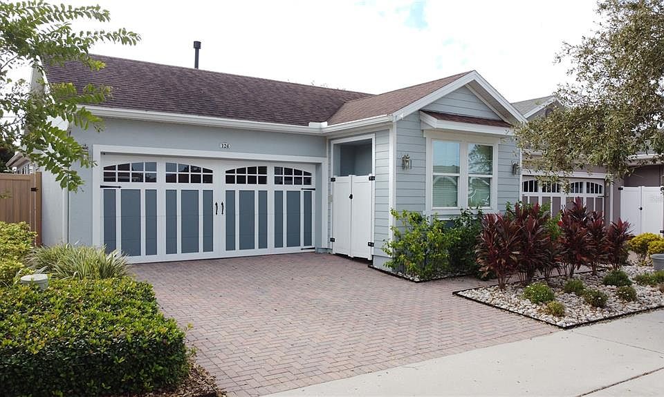 Imagine calling this beautiful home with sweeping views of the lake yours! This 2 bedroom, 2 bath with a den and 2 car garage home has many beautiful upgrades. The open concept lives large with spacious elegance. The home features a modern kitchen with gorgeous granite countertops, gas range, oversized prep island, upgraded cabinets, stainless steel appliances, backsplash, modern pendant lighting, and much more. Split bedrooms provide privacy with the Primary in the back that overlooks the lake and the second bedroom in the front. Dual pane Low-E windows, radiant barrier, and tankless water heater make this home very energy efficient. Trilogy Orlando is a gated community with a 57,000 square foot clubhouse that offers a resort style indoor/outdoor pool and hot tub, event center and lawn, tennis and pickleball courts, bocce ball, basketball, full service restaurant and bar, demonstration kitchen, massage room, men and women's spas, arts & crafts room, poker room, state of the art fitness center, and much more. Don't miss out on this beautiful home.