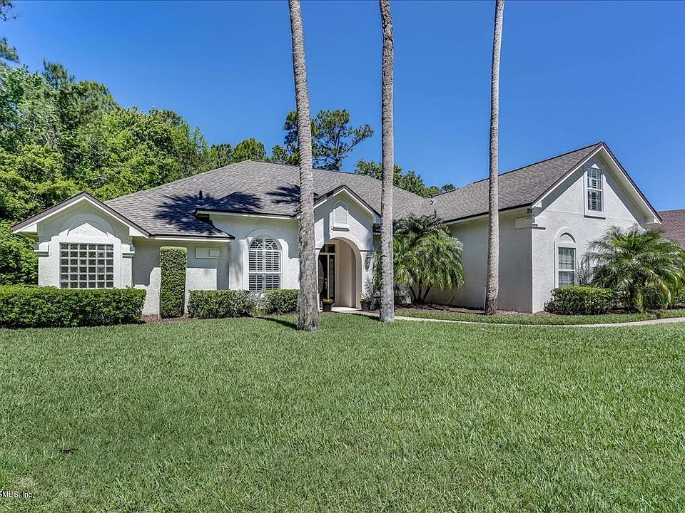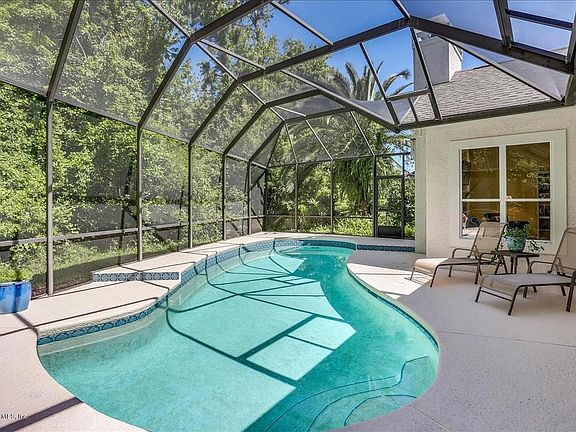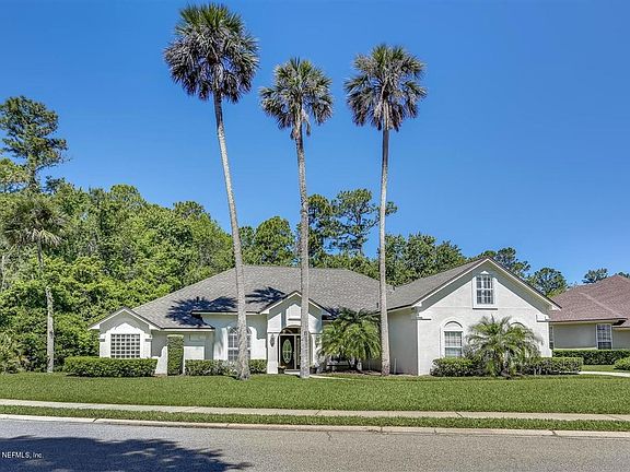 Nestled on a gorgeous private corner lot in desirable Old Palm Valley, framed by three grand palm trees, this bright cheerful home will delight! Featuring 4 bdrms/4 baths plus a study/den, sun-splashed open living areas and a sparkling heated pool, this home is prime for family living and entertaining. Notable features are the wooded private back yard, newer roof, stone tile floors in the public areas, new garage door, side entry garage, and an overall beautifully maintained presence! The community park and playground is popular spot in this neighborly community! Surrounded by top ranked St Johns county schools, some of Florida's finest golf courses and a hop, skip and jump from the gorgeous Ponte Vedra beaches, this property offers both a fantastic quality of life AND is a super value.