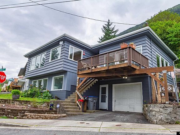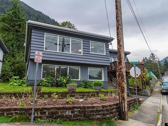 Incredible single family home with spacious apartment in the Highlands! This unique home offers its traditional charm with it's original refinished oak hardwood flooring, gorgeous brick hearth, terraced gardens, but also provides all the modern amenities you could want with a thoughtfully remodeled kitchen and newly renovated bathrooms. The main homes is 3 bedrooms and 3 baths, with a 4th room downstairs which could be designated as an office. A large family room with front deck provides a great area for entertaining guests or a quiet sitting area to enjoy the views of the Douglas Bridge and Gastineau Channel. The kitchen features a large island with farmhouse sink, cocktail bar, double oven and floor to ceiling cabinetry for storage. A single car garage and driveway offer off street parking. The two bedroom apartment is on the lower level and has its own entryway, an updated kitchen, new flooring, and several other updates. Come see all of the character this home has to offer!