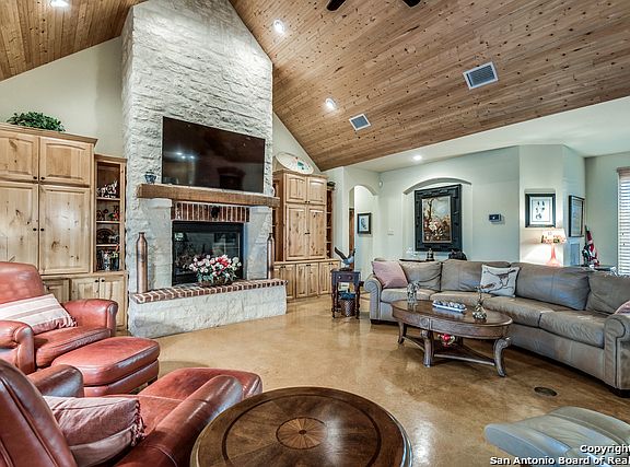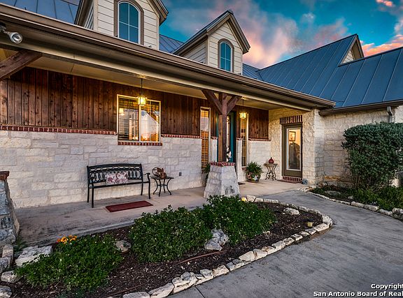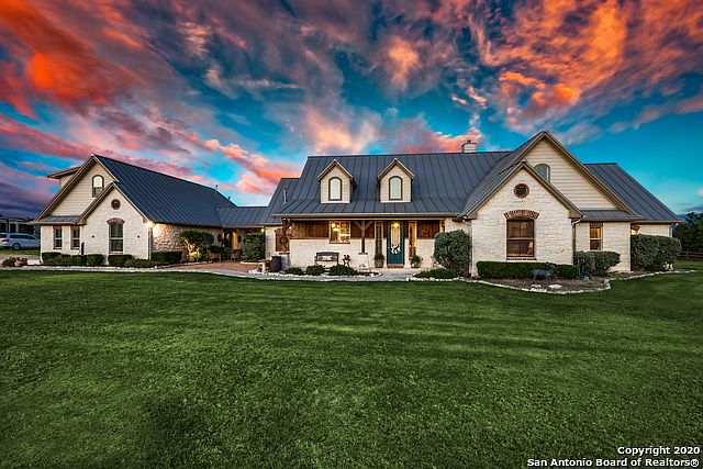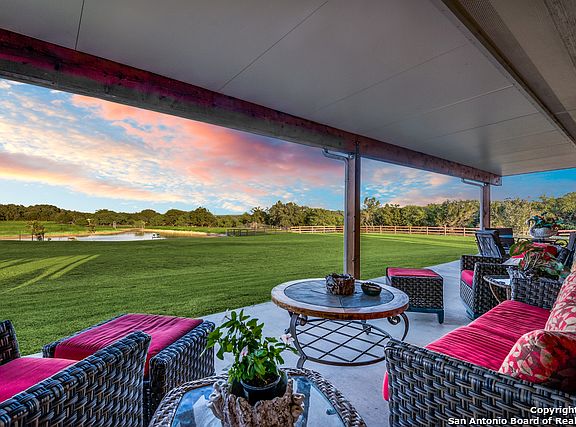 10.46 Acre Beautiful Horse Property w/AG Exemption, fenced/dbl cross fenced. Spring fed, Stocked 1/2 acre Pond. 5 stall Barn w/tack room. 2nd Barn w/2 garage drs & air conditioned workshop. Water well w/1400 gal cistern & Large stg room. Breezeway from main house to separate guest quarters w/bedroom, 2 baths & GmRm. Gorgeous wrap around, covered porches. Gourmet kitchen w/6 burner Wolfe cooktop, stainless appliance pkg, large island w/elec & custom knotty alder cabs. Newly replaced gorgeous wide planked hardwood, Scored & stained concrete flrs, oversized rock fp w/gas logs. Master suite w/coffee bar, private study & 2 separate closets. Hand trowel wall finish, rock accents, metal roof, gutters. A portion of this house can run on the built-in Generator. Detached RV, boat, farm equipment 6 car carport, electric gate. Breathtaking views & upgrades galore ...