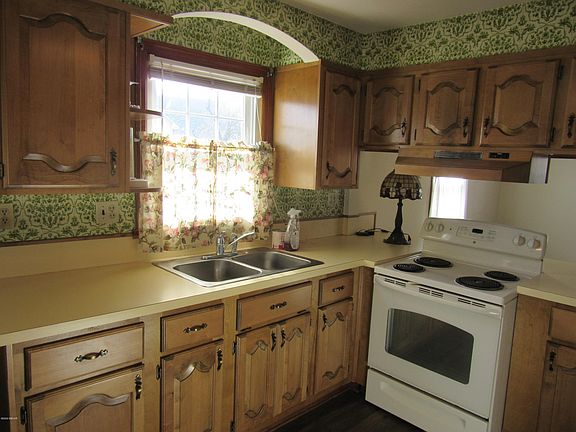 Nicely appointed cape cod home with one car garage, paved driveway, and two car carport over concrete slab. Double lot with very nice landscaping and fruit trees. Interior layout is nice and open, with one first floor bedroom and bath, and two bedrooms upstairs. Updated flooring in kitchen, bath. Enclosed back porch. New windows and newer roof. Oil heat as well as electric splits that provide A/C and heat.