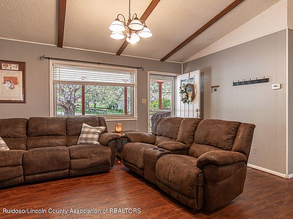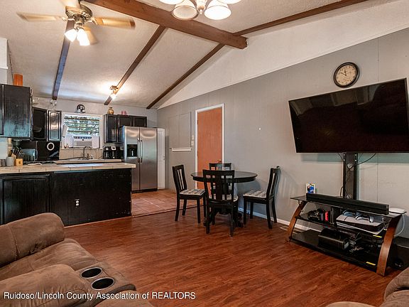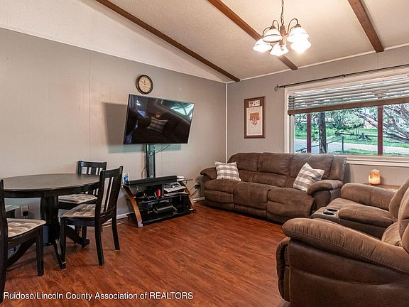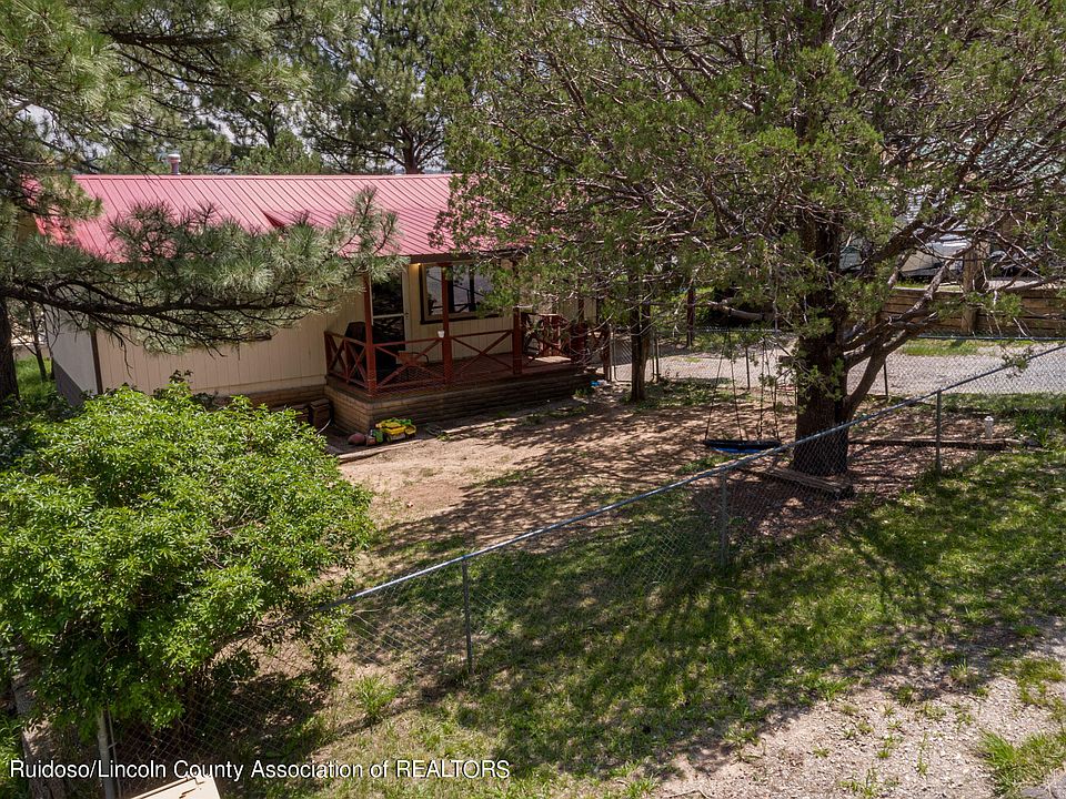 This charming two bedroom site built home sits on a rectangular lot, and is peacefully situated toward the back of the property leaving room for multiple vehicles to park and a fenced front yard - complete with a tree for a swing. Around 1k square feet affords for a great buy in today's market as a perfect starter home. Has investment potential for full-time rental or a small nightly rental. Close proximity to the grocery store, college, movie theater and hiking trails/mountain biking at Cedar Creek. Centrally located in beautiful Ruidoso, NM with extremely quite back neighbors. Within blocks of National Forest, 2 miles from Midtown& Grindstone Lake, 5.4 miles from Inn of the Mountain Gods, 13 miles to Billy the Kid Casino & Walmart, 17 miles to Inn of the Mtn Gods.