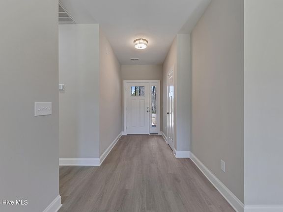 The Southport Plan by Atrium Homes is sure to capture your attention! Light, bright, and open, this home also has a very social living area. This new construction 3 bedroom, 2 bathroom single family sits on a over half acre lot. Set to be completed end of January 2025. It has a finished two car garage, a large open kitchen with white cabinetry, breakfast bar, granite countertops, pantry, stainless steel appliances, and a separate laundry area. LVP flooring throughout. Carpet in the guest bedrooms, ceiling fans in the living area and primary bedroom. Primary bedroom has double raised vanity with cultured marble counters and step in tiled shower. Guest bathroom has a shower/tub combo and marble surface vanity top. Located very close to South Carolina/North Carolina border. Come take a look at this excellent new construction property.