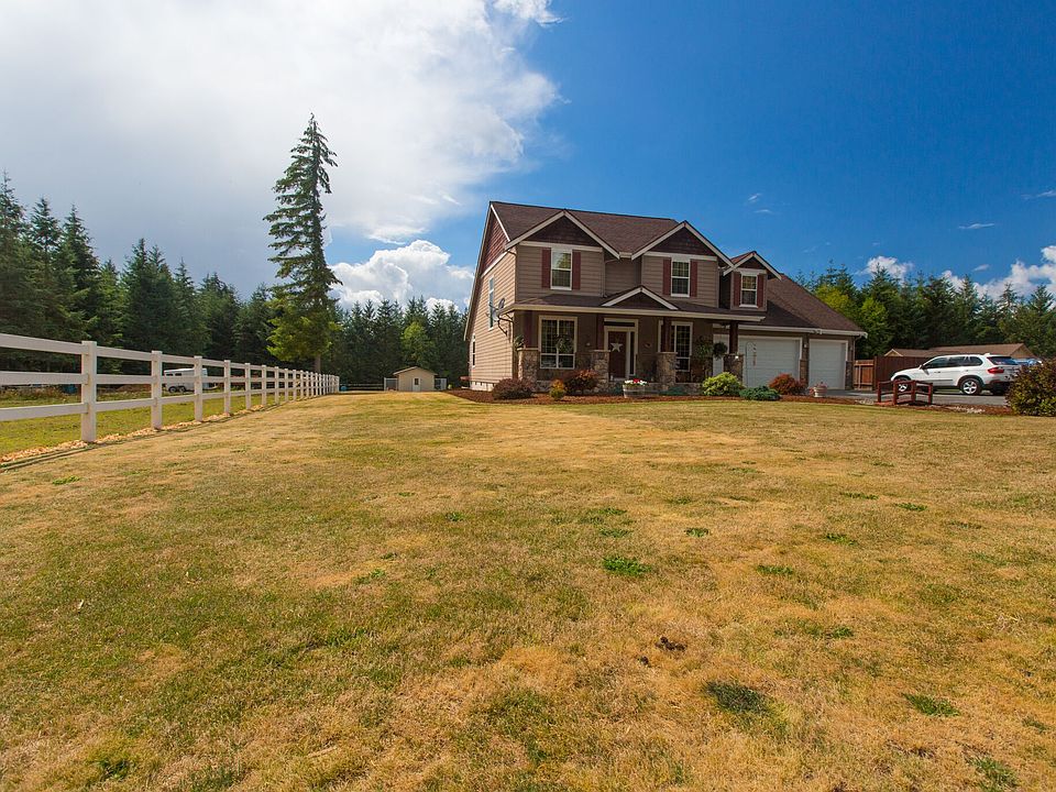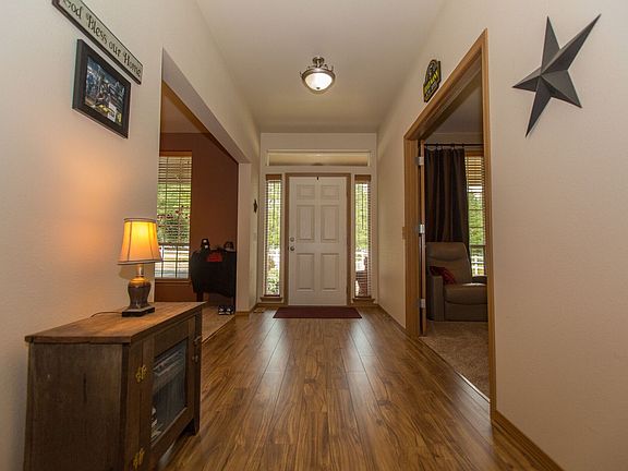 Quality custom 2856 sf home features spacious great room with soaring ceilings, brand new eat in kitchen with slab granite, pillars and hickory cabinets. Formal dining, theater, .50 bath are conveniently located on the main floor. Main floor master bed with vaulted ceilings and 5 pc bath . 2 bedrooms, an additional finished room, a full bath and a loft for lounging all on the upper floor. 36x48 shop, 16x16 dog kennel and paddocks for animals all on 5 acres. Make your appointment today!