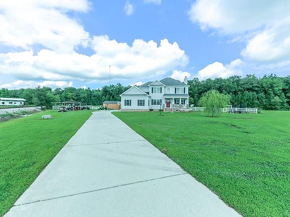 Home upgraded to the max with 10 acres! 2 acres cleared & 8 acres wooded. Home offers Great Room with Cherry wood mantel, marble hearth & wood burning fireplace. Beautiful Kitchen with granite counter tops with bullnose corners, ceramic tile, all wood construction maple cabinets, Pot faucet, Formal Dining Room with crown molding, shelves and bamboo hardwood floors, Den/Office with White French doors & hardwood floors, Large Master Bedroom with balcony, Master Bathroom with walk in shower including individually laid stones, heated jacuzzi with propane see through fireplace! And so much more!