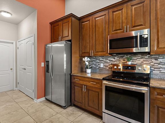 Welcome to this move-in ready 4 Bedroom, 3 Bathroom home featuring an OPEN FLOOR PLAN, upgraded kitchen with NEW CABINETS and GRANITE countertops, and modern tile floors throughout-no CARPET! All bathrooms have been updated with custom glass doors. Enjoy the oversized screened in LANAI with sparkling POOL and SPA, plus a LARGE BACKYARD FENCED - dogs allowed. Updates include a NEW ROOF in 2024 and PAID OFF SOLAR PANELS for energy savings. Located in the GATED community with pickleball- tennis courts, playground, lawn care, cable and internet included in the low HOA. Close to all DISNEY PARKS, shopping, dining, and ORLANDO AIRPORT, this home combines comfort and convenience right in the heart of DAVENPORT / CHAMPIONS GATE FLORIDA! Full time residence or vacation rentals allowed.