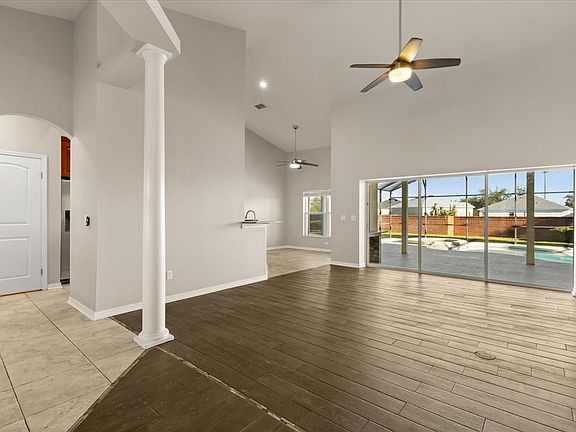 Granite countertopsLarge backyardOpen floor planSparkling pool and spaOversized screened in lanaiCustom glass doorsModern tile floors