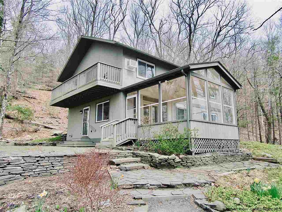 Beautiful Woodstock Contemporary Home..first time on market since 1998. Perfect for buyers looking for a home in Woodstock, close to the village, yet very much "away" from the crowds. This home has hardwood floors, dining area & living room greet one another and compliment the feeling of nature which is clearly visible from every window. You will look out to lush woodlands & listen to seasonal stream on your 2 acre property, which is adjacent to 191 acre DEC lands. Master suite has large spa-style bathroom, private deck, propane fireplace and walk-in closet. Two additional closets are in this suite as well. The entire interior of this home has been freshly painted, ceilings, walls and trim...hardwood floors in beautiful condition and 3 season porch completes your well appointed home retreat!