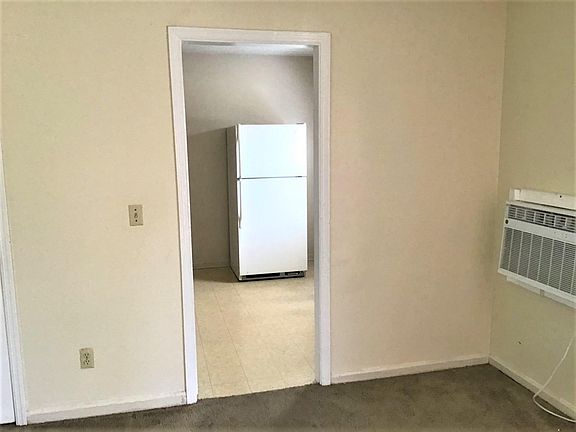Downstairs apartment. Living room has carpet. Eat in kitchen has a fridge and stove included. Two spacious bedrooms with carpet. Hall bathroom has a tub/shower combo. Wall unit. Off street parking. Water, sewer, trash, and lawn maintenance included for an additional monthly $20.00. No pets. No smoking. Available Now!