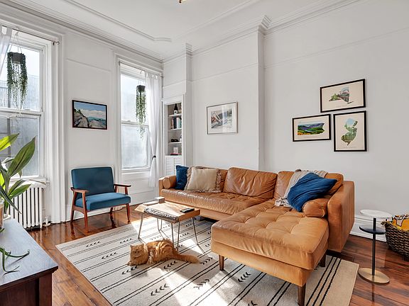 124 Calyer is a gorgeous three family federal brick townhouse on one of Greenpoint's most beautiful residential blocks. The building measures 20' x 56' on an 80 foot deep lot, and is Landmarked. The interior and exterior details have been lovingly preserved. High ceilings throughout, with original plaster picture-frame and crown moldings. Original hardwood floors can be found in every unit. The apartments are all large and nearly identical. The oversized windows and high ceilings in every unit create a bright and open feel throughout. Each has a separate kitchen, living-room, formal dining room, large primary bedroom, and an extra "bedroom" or home office that can be used in a number of ways. The Parlor floor can easily be combined with the windowed english basement to have an owners lower duplex, with two income producing rental apartments above! The 3rd floor unit is equipped with a washer/dryer and there is also a washing machine installed in the large finished basement. The mechanical room is located down there as well as another bathroom and plenty of dry, white boxed space. The 1st floor and basement have easiest access to the charming backyard. It's the ideal setting for barbecues, gardening or entertaining. This building is the Greenpoint dream come true! Ideally situated in the middle of all the best local restaurants, boutique shops, and nightlife that have made the area so desirable. Property can be delivered vacant.