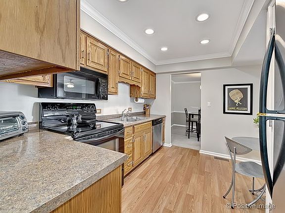Bright and spacious 3 bedroom condo with open floor plan, lots of natural light and great views from all windows. Quiet and secure. Many recent upgrades include: updated kitchen with tray ceiling, gutted and renovated master and hall bathrooms, newer AC, furnace and humidifier. Spacious living room includes wood burning fireplace and leads out to private balcony to extend relaxation or entertaining. 2 deeded parking spaces in heated garage with car wash and additional secure storage. Heat and water covered by assessment. Quick access to 55 & 294. Minutes to Hinsdale, Highlands Metra and shopping. Excellent schools - Lyons Township.