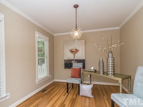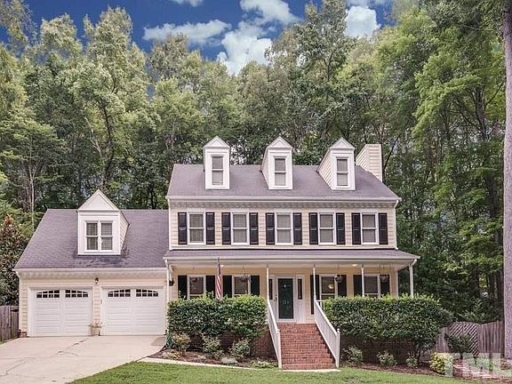 Beautiful updated home with rocking chair front porch nestled on 1/2 Acre wooded lot offers privacy galore and a walkable friendly neighborhood. No HOA here, just a tight knit community. Hardwoods throughout 1st/2nd floor except bonus. Large Chef's kitchen with breakfast bar, granite and stainless steel appliances. Fenced back yard with optional playground area. Lots of flowering shrubs and a cook's garden with spices including a grape vine and a large fig tree. Third floor walk up attic leads to plenty of storage or can be easily finished for additional living space. Newer HVAC system and sealed crawlspace system!