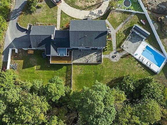 Center Entrance Colonial. 2 story open entry foyer with curved staircase, 3.5 baths, 2 spa tubs. Recent updates include (roof, vinyl siding, Harvey Windows, A/C unit 1st floor, bar fridge, ice maker, entry portico supports and steps). 1st floor cathedral ceiling massive fire place great room, 1/2 bath, sliders to screen porch, sliders from dining room to bi-level open decking system, kitchen has recent gas counter top range and additional electric counter top, Thermadore wall ovens, Sub Zero Refer. Lower level playroom with 2 sets of sliders to gorgeous patio, 4th bedroom with walk in closet and built in shelving , 2 additional finished rooms. 3 mini splits heat and air cond. Possible family suite(permit required), 2 fire places(living room and great room)fenced yard with pool and cabana. The primary bedroom is front to back with a separate make up room -walk in closet- bath with Jacuzzi Tub and separate shower stall. Almost 2 acres in sought after North Tewksbury location.