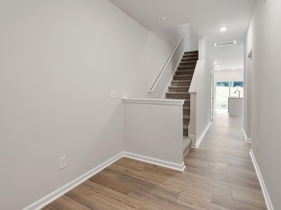Welcome to Your New End Unit Townhome at Georgia's Landing! This thoughtfully designed 2-story townhome offers the perfect blend of space, style, and comfort. The main level features 9-ft ceilings, luxury vinyl flooring, and a bright white kitchen with a spacious sink that flows seamlessly into the living area. As an end unit, enjoy an abundant natural light. With a larger lot, you'll have more space to enjoy. Upstairs, the primary suite is a true retreat with a walk-in closet, double vanity, and a garden tub with shower walls. Two additional bedrooms and a convenient laundry closet complete the second floor. Located in the highly desirable Georgia's Landing community, this home offers easy access to over 2 miles of paved trails, perfect for walking, running, or biking. Take advantage of resort-style amenities including a pool with a lazy river, chic cabana, game room, dog park, playgrounds, and more. With greenways and outdoor adventure right outside your door, you'll love the balance of nature and convenience. Plus, with just minutes to the Farmers Market District and Downtown Raleigh, Georgia's Landing provides the ideal mix of modern living and an active, connected lifestyle. Call today for the most up-to-date incentives!