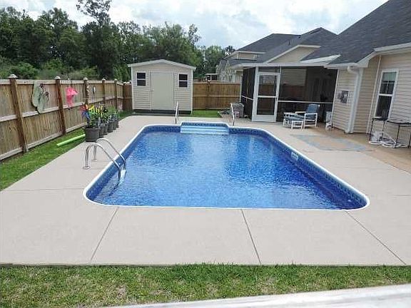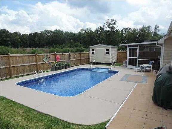 Spectacular 5 bedroom home with large master down that includes a boxed ceiling and deluxed master bath with separate shower and large garden tub. IN GROUND NEWLY (WITHIN LAST YEAR) INSTALLED POOL THAT IS A LOW MAINTENENCE SALT WATER SYSTEM POOL!!! Also separate (formal) dining room off large foyer and huge bonus room that can be converted into 6th bedroom. Large two car garage that has many shelves built in for the guy who lives to play in the garage. entry from garage in spacious laundry room/mudroom. Open kitchen with arched pass through to a large open great room complete with natural gas fireplace. Kitchen is upfitted with 42" maple raised panel cabinetry, stainless steel appliance package and grantite counter to go along with beautifully added back splash. Retreat from the large dinette to a roomy screened lenai that will take you out to a paver pation for cookouts while the quest and your self enjoy the large beautifully decored salt water pool. Easy to main tained and lots of fun for the whole family. Just installed less than a year ago. Also for more storage and yard equipment, a very elegantly placed utility building that appears to be an appendage of the original home. Now lets take a walk upstairs and see the wide stairs and hallway that separates two bedrooms on each side and a large bonus room. One bath is easily accessable to the other bedrooms and one that both shows entry to the hall and private entry from bedroom 5 that can be used as a dual master. Some hardwoods, granite, tankless hot water heater and more add to the elegance of this home available now!! Will not last so come see and make it your dream home!!