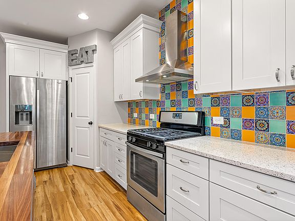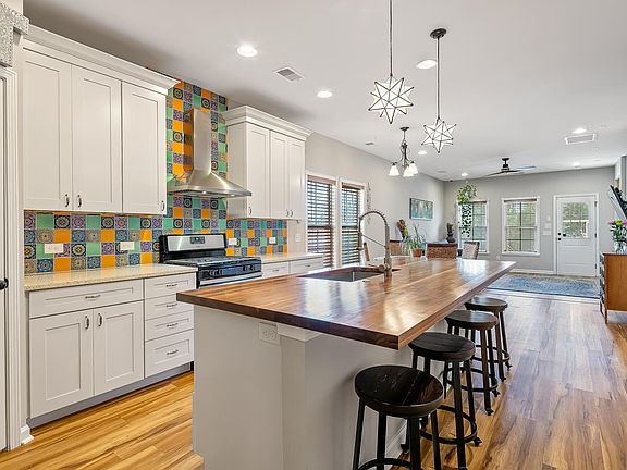 Welcome to 124 Chaste Tree Circle. This spectacular home offers one story living with a full guest suite on 2nd floor including living area with storage closet, bedroom with walk-in closet and full bathroom. Attractive Walnut Butcher Block Island is the center piece to this one-of-a-kind custom remodeled kitchen. Kitchen also features white maple soft close cabinets and drawers with a 3.5'' crown molding at top along with a glass and seashell composite counter. Telavara Artisan tile backsplash adds the perfect splash of color and design to this space. LVP flooring throughout the first floor except in the carpeted bedroom and tiled bathrooms. Master bedroom located at the back of the house overlooking spacious backyard. Master bathroom features tiled luxury shower with dual shower heads and corner seat, dual sink vanity, linen closet, and access to walk in closet. Screen Porch allows additional enjoyment of the large fenced in backyard which backs to a wooded area. Liberty Village of Brickhope Plantation has their own pool and playground. Situated on a circle street with no through traffic along with the very functional floorplan, amazing backyard and attractively unique kitchen, this gem will not last long.