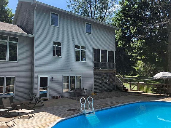 This quality built 4 bedroom, (2) full baths, (2) 1/2 baths home is nestled on an acre lot in one of Angola's premier subdivisions - Timbercreek. Primary bedroom has a large walk-in closet and a tiled two person shower. There is a full finished basement, a 15' x 30' pool with a large deck for outside entertainment. Wildlife roams the large backyard overlooking an area that is a protected parcel. The large detached garage/workshop is heated, insulated, with water for all kinds of projects and the 2nd floor has attic storage. Enjoy the quiet and solitude from the rear enclosed porch. What a view! See this one of a kind property before it sells.
