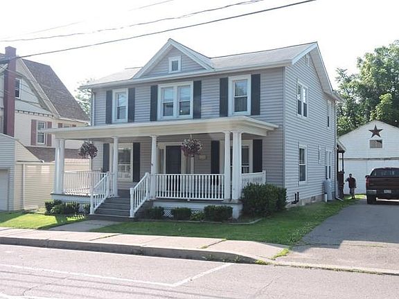 Stately 2 story home in Wyalusing Boro. Home features 3 bedrooms w/ possible 4th & 1 1/4 baths. Beautiful hardwood floors throughout the house, living room, sitting or family room, formal dining room, galley style kitchen & utility room. Central AC for the dog days of summer & an LP fireplace to ease the wintry chill. Electric was updated to 200 amp service in May 2017. Outside you will find a back deck for entertaining, a covered front porch for relaxation,a fenced in back yard & 2 story carriage house. Call for your appointment today!