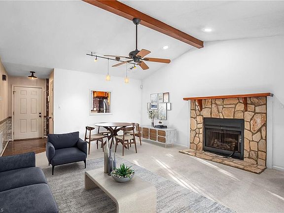 Priced to SELL and offering incredible value! This charming 2-bedroom, 2-bathroom condo is nestled in a serene, wooded community in Winston-Salem. Enjoy the perfect blend of city convenience and peaceful seclusion. Upon walking in, you are greeted by the hardwood floors and the kitchen that comes equipped with ALL APPLIANCES shown! The spacious living room boasts vaulted ceilings with a stunning accent beam and stone covered fireplace! The primary bedroom features an ensuite bath, while a second full bathroom sits right of the hall way for guest and the second bedroom. Don't miss the opportunity to make this cozy and inviting home your own!