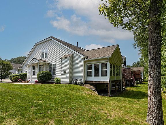 Light, Bright & Airy End Unit Townhouse - Condo on the 10th Fairway of Shining Rock Golf Course & Restaurant Clubhouse, Driving Range, and Par Three Course. This beautiful freshly updated two story home has an open design with hardwood floors, cathedral ceiling, tray ceiling in first floor master suite with standup shower plus spa-tub and walk-in California closet. Also on the first floor is a second bedroom, full bath and laundry room. The modern updated kitchen has stainless steel appliances, granite countertops, glass tile backsplash with grey cabinets, dining nook and bar stool counter. Additionally, the great room consists of a dining area and living space with a gas fireplace. The three season room with cathedral ceiling overlooks a private wooded area. The second floor has new carpets, one large bedroom with two large walk-in closets, an office-loft and full bath. The oversized unfinished basement has two full sized windows and is ready for finishing. There is a two car attached garage with epoxy sealed floor and two large windows leading to the recently sealed double spaced driveway. This inspiring home is sparkling clean and ready for you to move in!