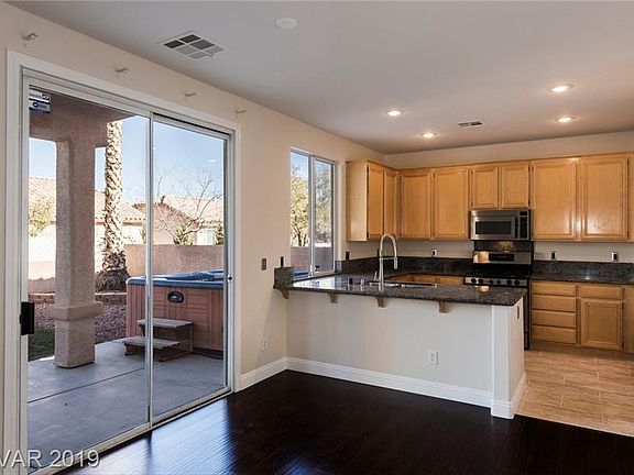 Convenient Living in a Prime Location. 2-story w/$25,000 in upgrades, including new tile, engineered hardwood, baseboard & carpet. Kitchen w/granite counters & stainless steel appliances. Great room w/built-ins. Rear yard w/shaded patio, lawn, & HotSpring spa. Master up w/city view balcony, hers&his closets, double vanity, shower, & tub. Upstairs laundry. 2-car garage. Located near parks, TPC Golf Course, Summerlin Hospital, & Downtown Summerlin.
