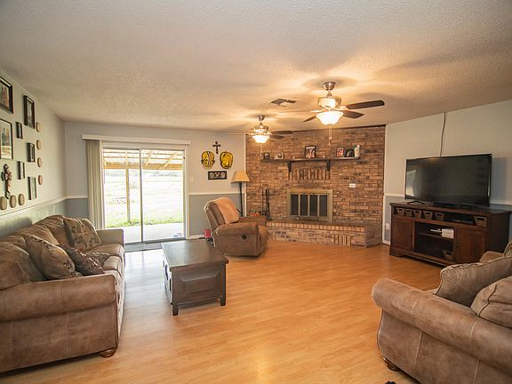 Country living just minutes from town. Offering 3 bedrooms 2 bathrooms, and a oversize bonus room that could be a 4th bedroom or game room. Sitting on 8 beautiful acres of pasture land, with a pond, a 24x48 pole barn, with concrete floors, two 10 ft roll up doors, and electricty. New paint and fixtures throughout home, new AC unit, reinsulated attic, wood burning fireplace, 15 pecan trees outside, and much more. This home is ready for new owners. Call today for your private showing.